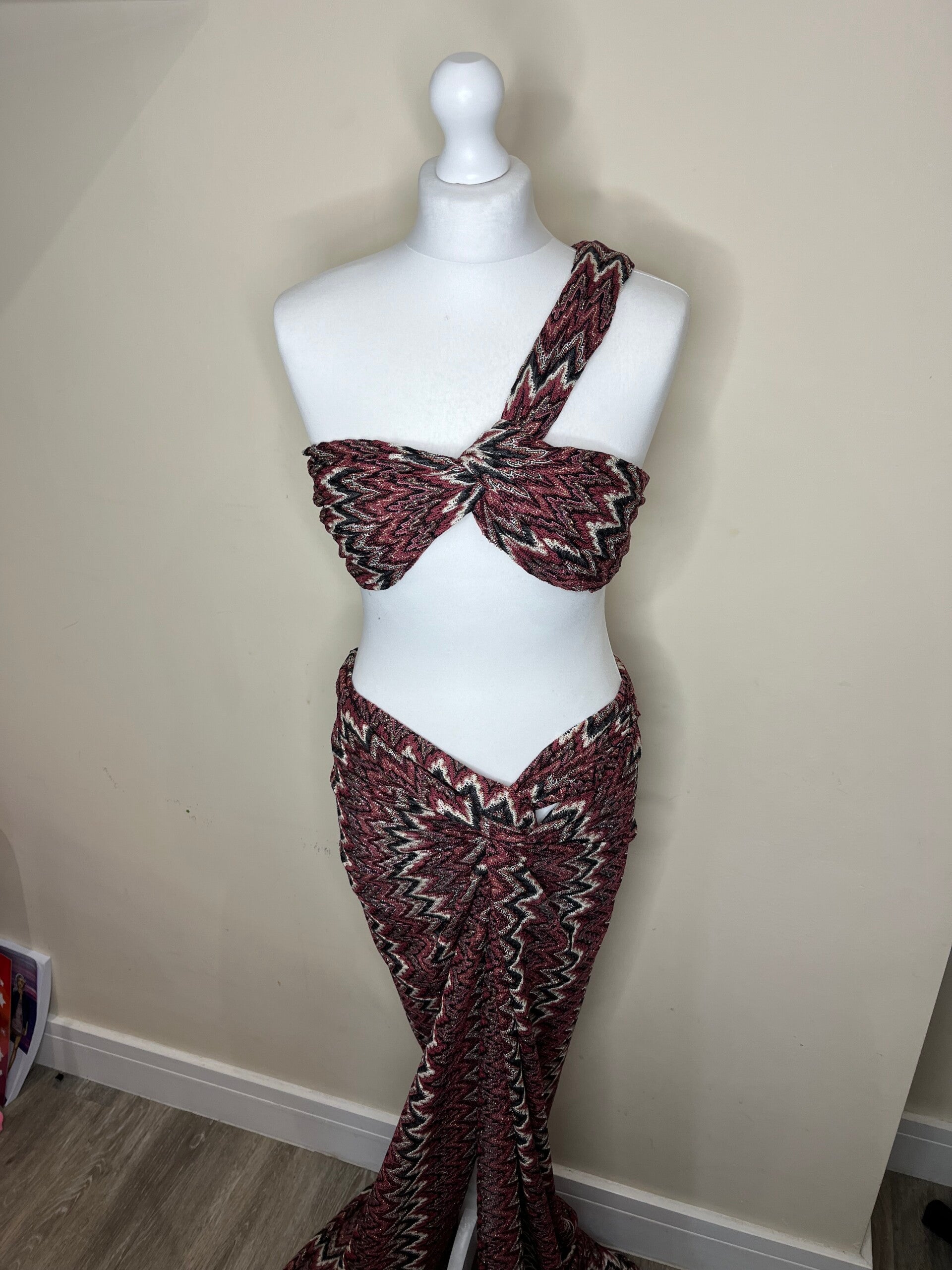 Our tie top zig zag knit and matching maxi skirt two piece co ord in purple