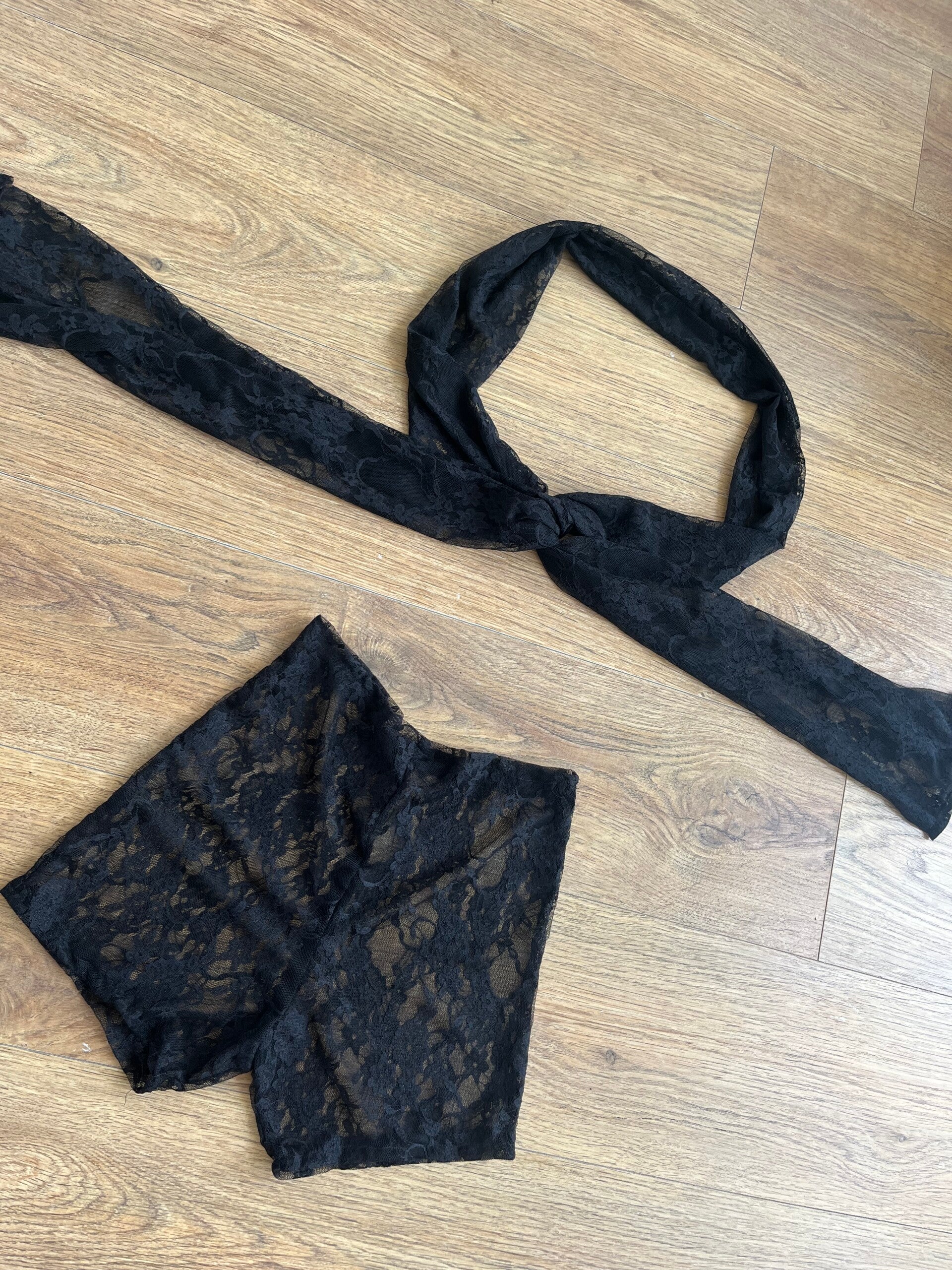 Our black lace hot pant and multi way lace tie top